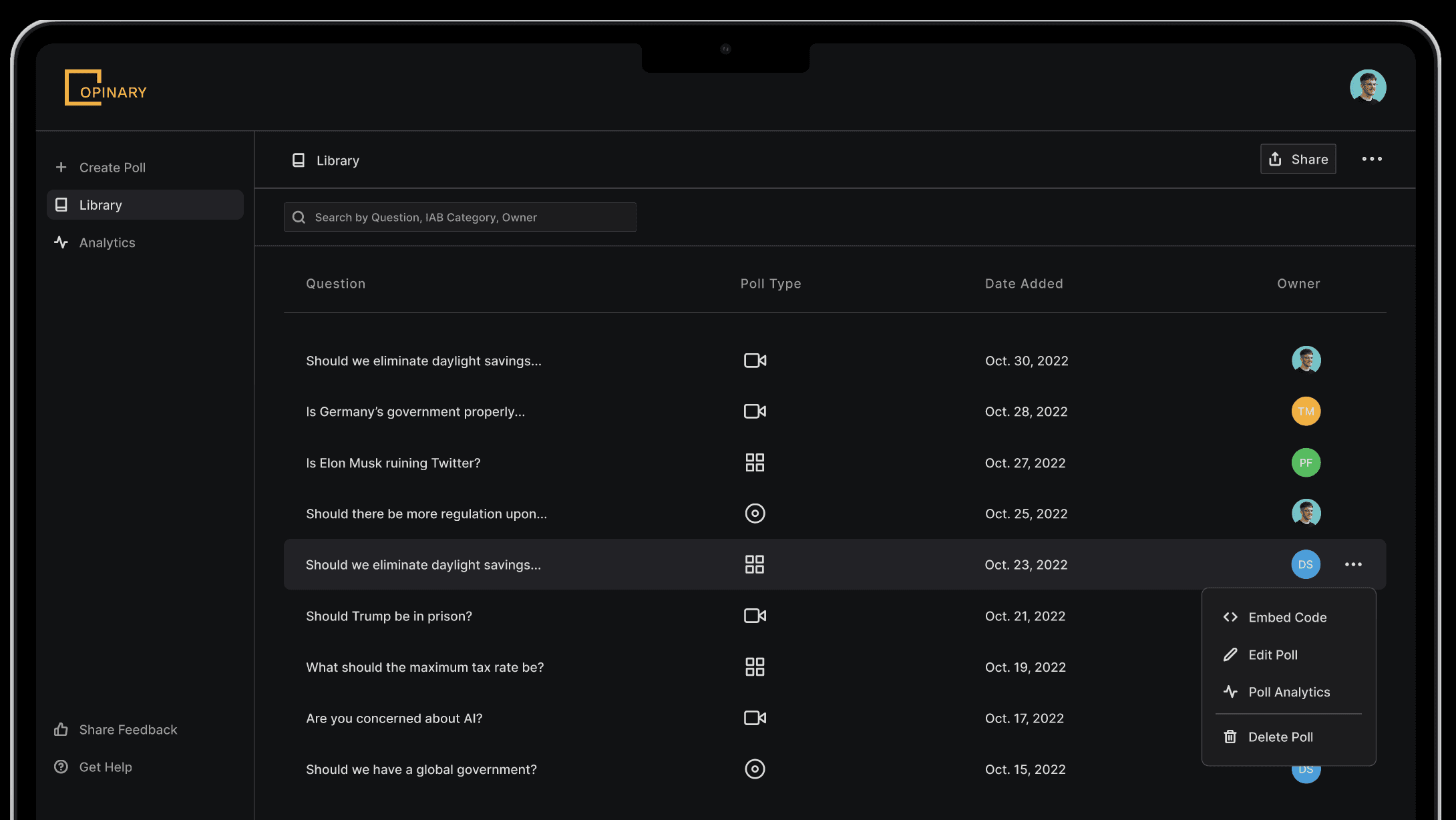 Overview, tracking, and management of ongoing polls.