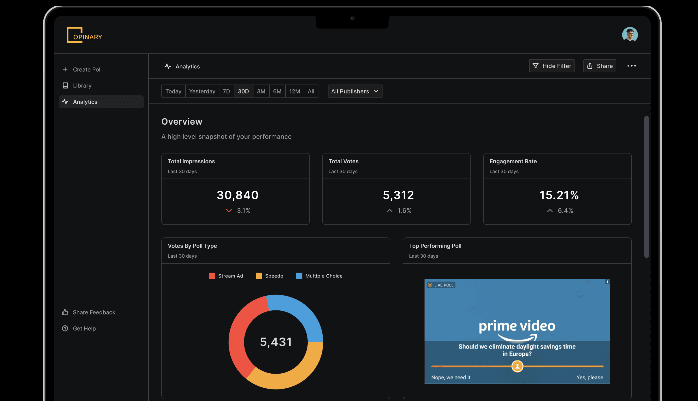 A detailed breakdown of all poll performance and metrics.